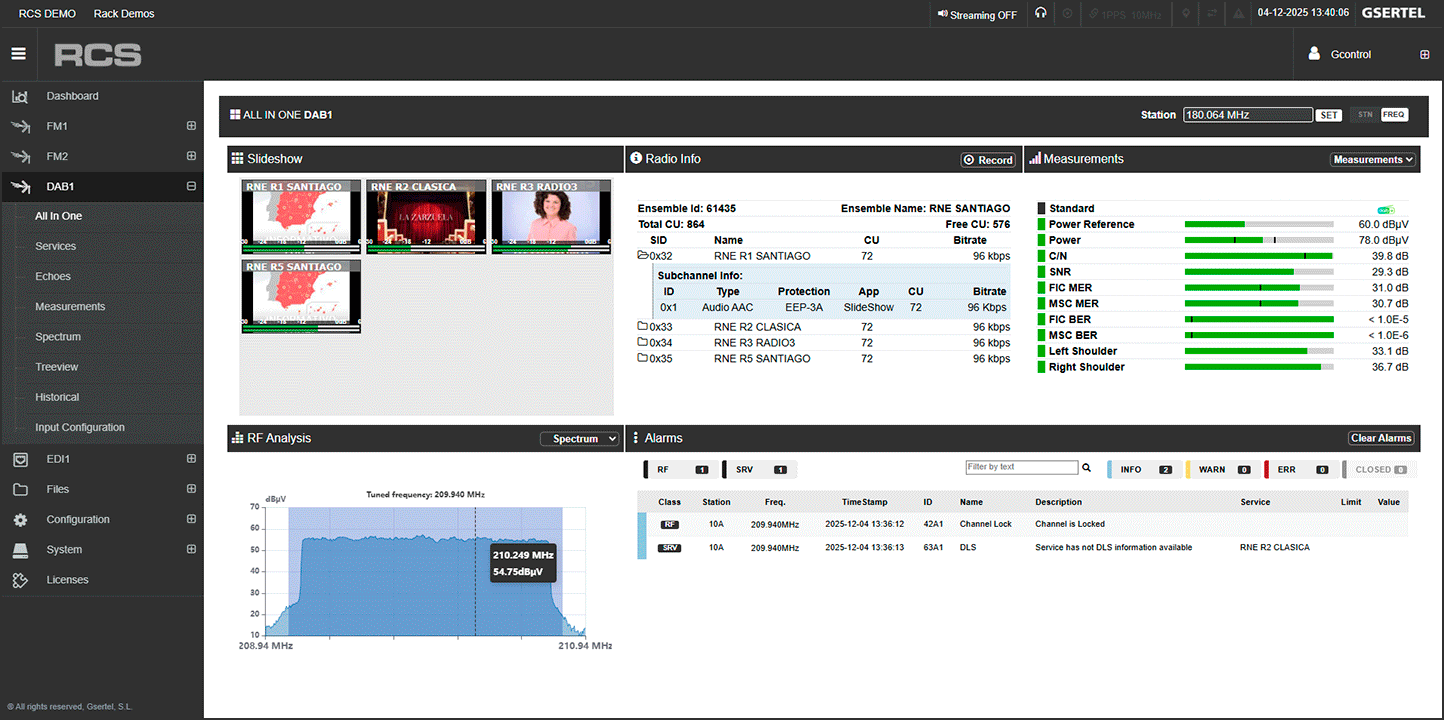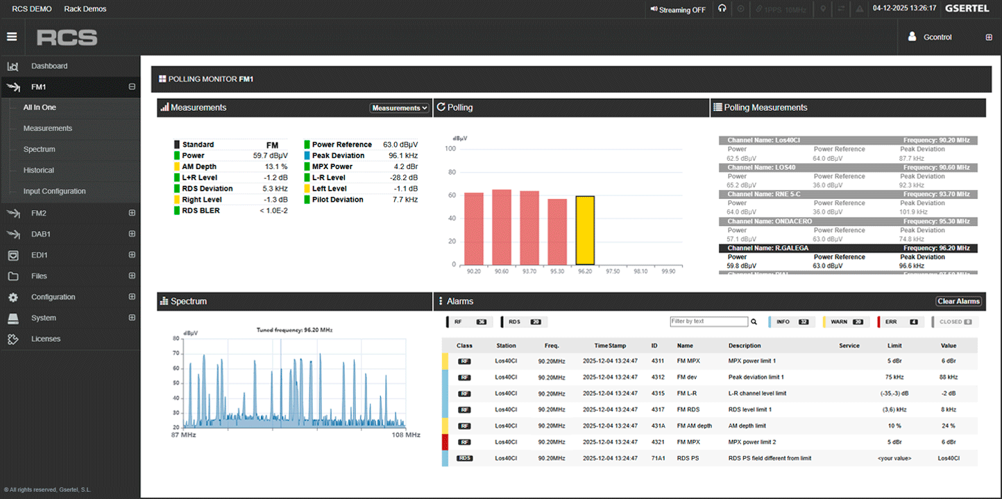 RCS Radio es la sonda de Gsertel para la monitorización profesional remota, proactiva y en tiempo real de entornos híbridos FM/DAB.
