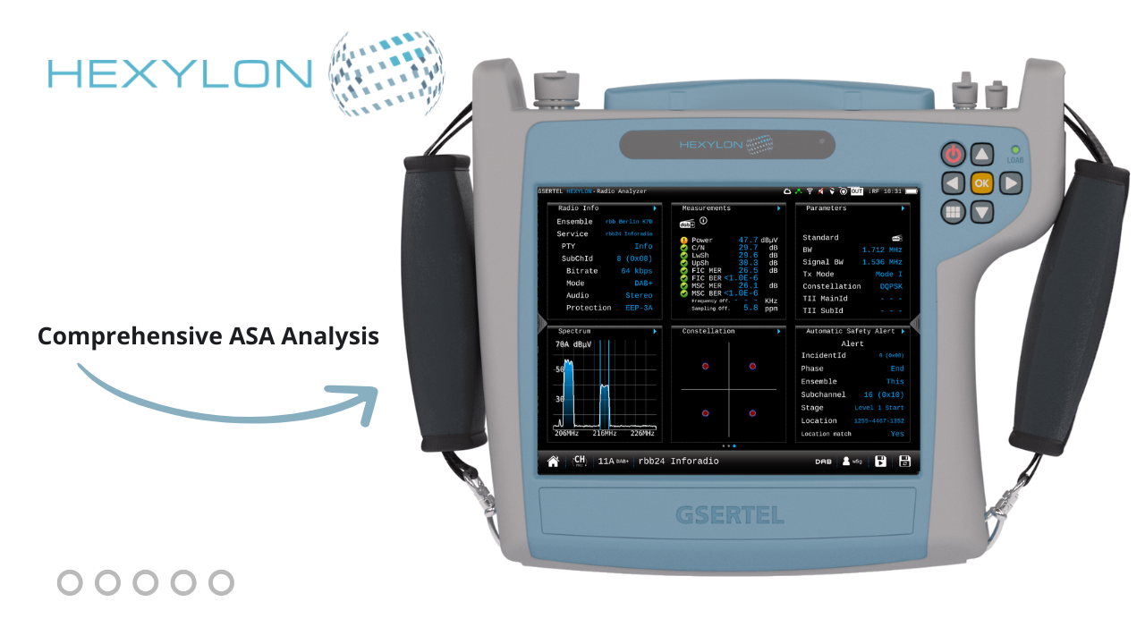As a new feature, the latest Hexylon version incorporates ASA (Automatic Safety Alert) functionality, enabling the verification and monitoring of the public warning system integrated into the DAB+ standard.